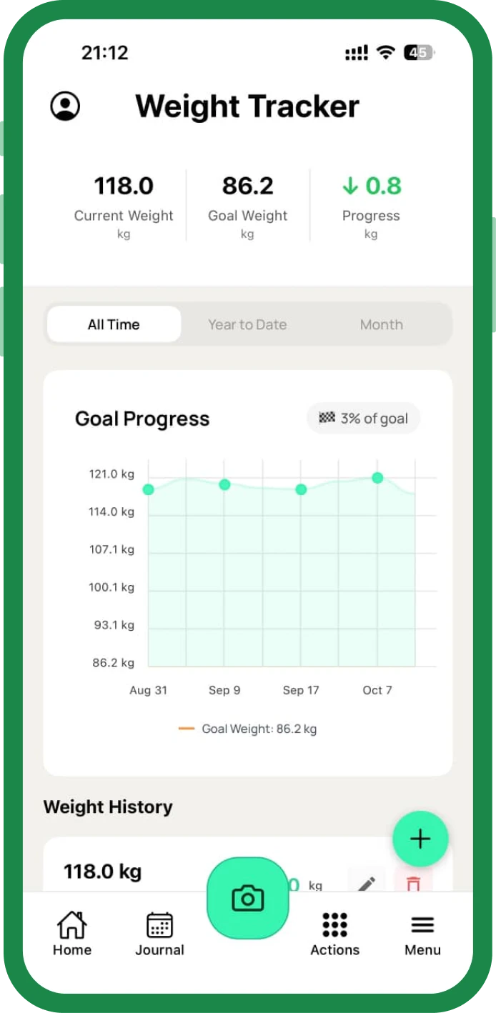 Download the app, set up in minutes, log your meals and watch your body transform. It's really that simple. No hassle, just progress and real lasting results.