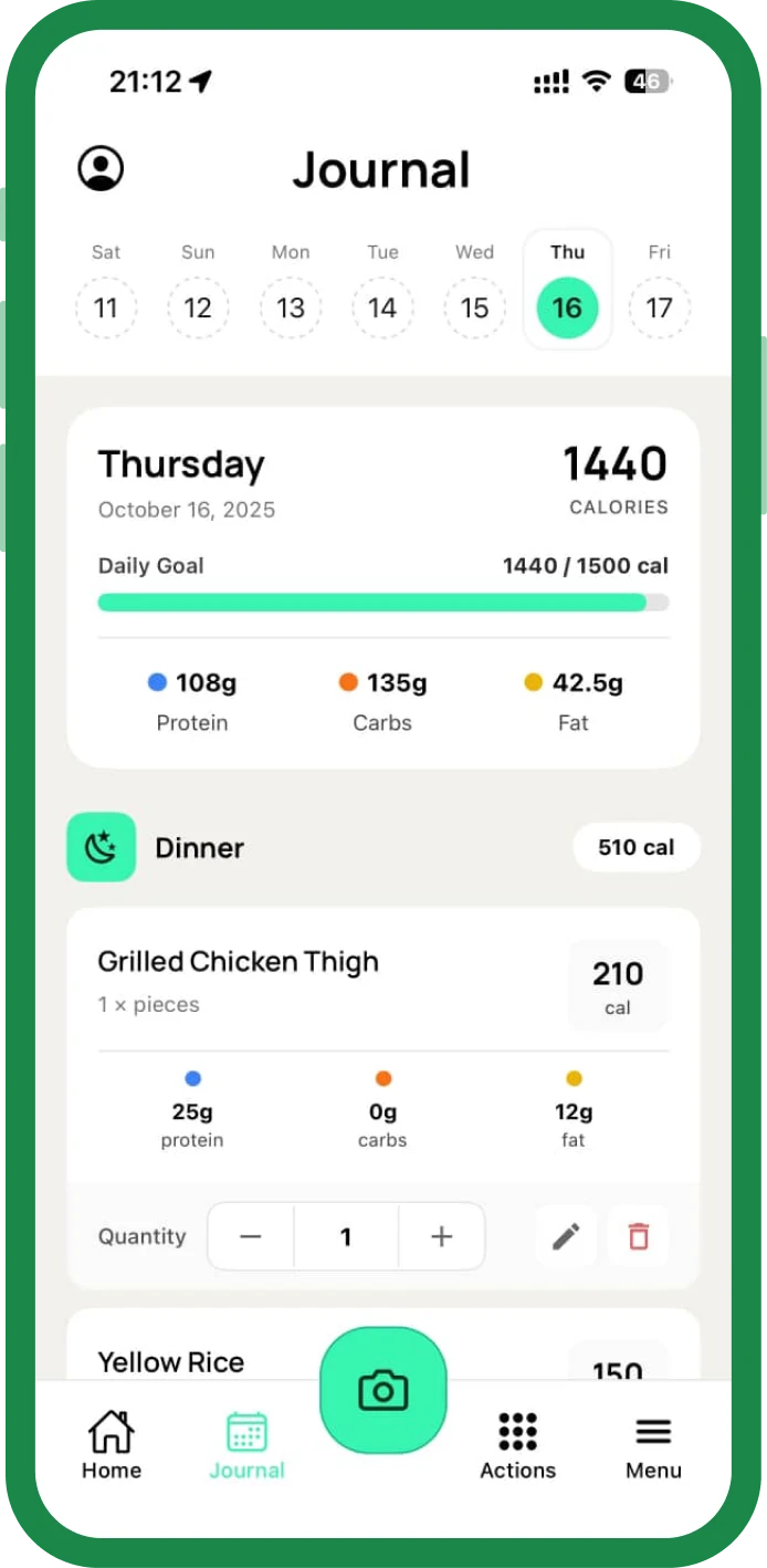 Our AI-powered system gives reliable estimates based on LLMs training data. For precision (e.g. professional athletes, body builders), insert portions manually using a kitchen scale.